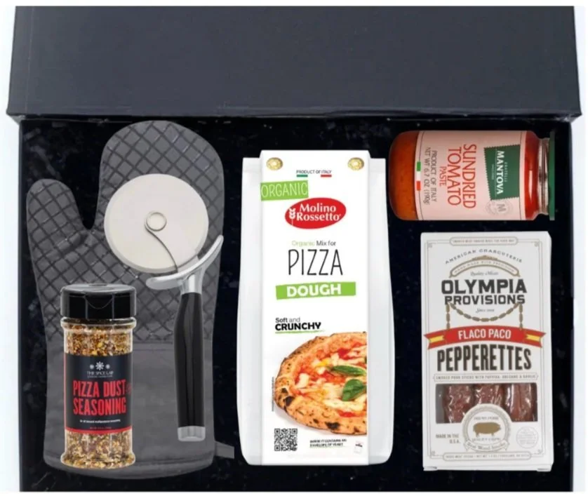 As we welcome the crisp days of Fall, we're thrilled to present you with our exclusive Pizza Night gift set. Featuring an oven mitt, pizza cutter, ready-to-bake pizza dough, flavorful pizza sauce, a curated blend of herbs, and delectable gourmet mini pepperettes, this set is designed to elevate cozy evenings at home. Treat your clients to the ultimate pizza-making experience, perfect for gathering around the table and creating delicious memories with loved ones.